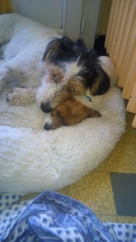 PS: Ils ont fait une grosse sieste ensemble cet aprèm, avant de sortir jouer, l'un sur l'autre.
