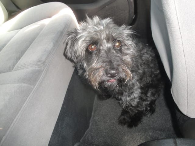 je retrouve finalement ma Léna prostré sur un trottoir à 5 mn de là .. je vérifie si ca va ..ca a l air .. puis je repars ramener le chiot a son propriétaire. (je précise 10min se sont ecoulée entre le moment ou j ai pris le chien pour eviter que l autre se barre et le moment ou je le lui ai ramené !)