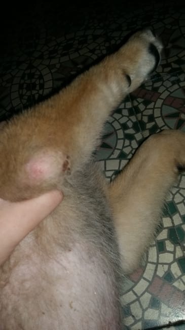 Voilà j'ai un chiot berger malinois qui a eu 2 mois le 7 juin mais le problème c'est qu'il se gratte beaucoup et maintenant sur son ventre il y a toutes des croûtes mais je viens de découvrir ça ce soir c'est qu'à sa patte avant droite au milieu ( la patte plie) il a une grande croûte avec du sang.