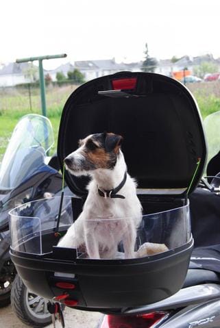 Vous êtes motard(e)s et votre poilu vous accompagne aussi à moto !