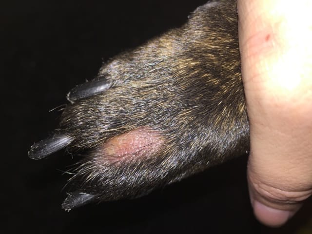 J'ai regarder sa pate le temps qu'elle me laisser regarder j'ai aperçu petite piqure
