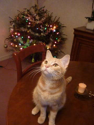 Mais pas avant le 15 je pense parce qu'avec les chats c'est mieux le plus tard possible le sapin et surtout cette année le plus petit possible si on veut qu'il tienne plus qu'une journée, parce que l'année dernière on a pris un plus petit que d'habitude mais au bout de 3 jours ils était déplumé en bas à on à du l'arrocher au mur pour que les chats ne le fasse plus tombé hihii