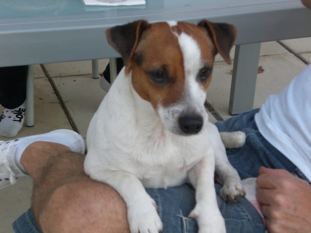 Atome sur les genoux de son maître!