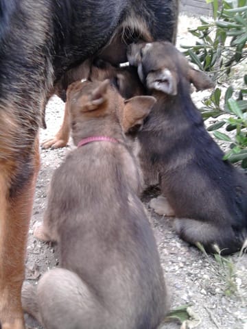 Les chiots ont bien grandis, il reste 1 male et 2 femelle, mais nous sommes inquiètes, car une des chiots est très maigre, je pense que c'est la plus soumise et que donc elle taite moins que les autres...Je ne sais pas....Je vous mettrais des photos dès que je les aurais transféré sur mon ordi ^^