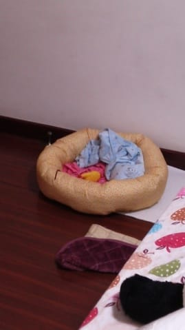 il commence deja bien a se calmer mais saurais tu pourquoi il ne veut pas dormir dans son panier? il dors parterre il fait froid du coup je le remet dans sa cage car jai mis un tapis et des couette dedans ...et il pleur...