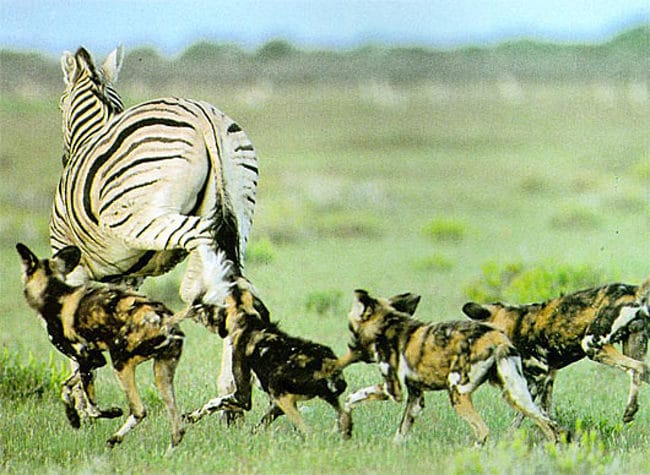 C'est le chien sauvage d'afrique du sud. Quand lui, décide que c'est *cette* proie, et bien elle n'a qu'une chance sur 10 de s'en sortir. Il bat toutes les espèces (prédateurs), avec un taux de succès de 90% (15% pour le lion). Il règne en roi et maitre. Ne craint pas les hyènes, encore moins les félins.