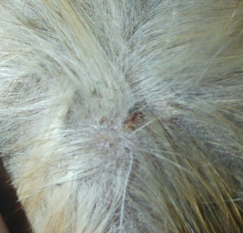 Mon chien Chucky a de base, une peau atopique et il est allergique aux piqures de puces (la salive). Il a donc la peau fragile avant tout.