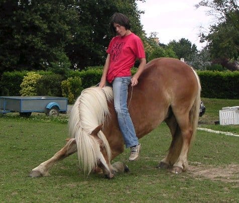 Mois sa fait ma 4 ème année que je fais de l'équitation avant je faisait des stages j'ai mon galop 5 j'aurais peut être un cheval l'année prochaine mais malheureusement je vais devoir arrétter l'équitation car sa coute cher et vegas le cheval si il a peur ou si il tombe c'est pas que Son problème c'est aussi le tiens car autant tu as fait quelque chose qu'il ne fallait pas ducoup c'est pas forcement sa faute ^^ et quand un cheval est jeune c'est normal qu'il péte un cable xD à savoir le cheval est un animal proie et il a toujours son instint de fuite donc c'est normal si il a peur d'une chose nouvelle ^^