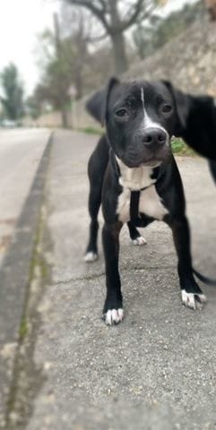 Et paf , un croisé Staff ! Très beau chiot mais attention à la catégorisation, faites effectuer une diagnose pour savoir si il rentre dans les critères de la catégorie 1 où si vous pouvez le faire déclasser. Cette diagnose aura lieu aux alentours de ses 8 mois environ.