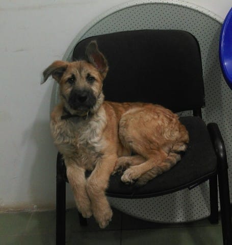 Berger belge Laekenois pour le pelage et Braque Hongrois pour la tête après la couleur de sa queue rappel le pelage bringé qui est typique de certaine race