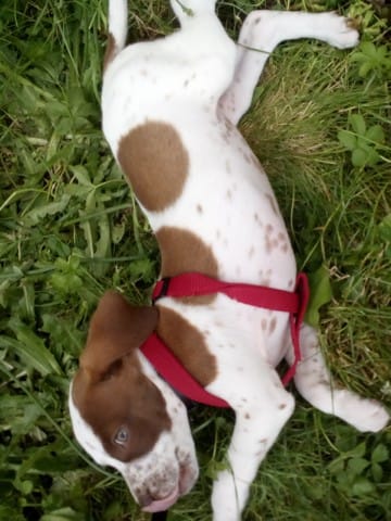 J'ai une amie qui possède un Epagneul breton qui me dit que notre petite Nala ne ressemble pas vraiment à un Epagneul mais plutôt à un croisé Pointer et effectivement en balade on nous dit qu'elle manque de poils (poil court) et n'a pas tellement la tête d'une Epagneul ... Je me tourne donc vers un forum canin espérant avoir quelque avis ...