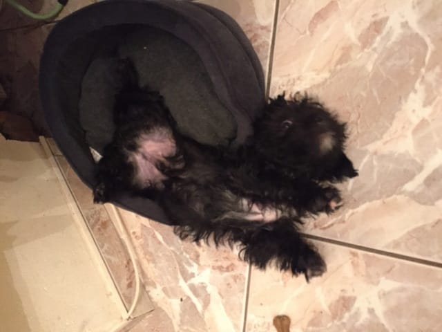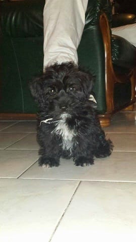 Bonjour à tous, j'ai adopte ce chiot il y a 1 mois (cf photo ou il est assis), il était sur le bord d'une route avec puces, vers et coup a la tête. Avec de bons soins il va très bien aujourd'hui ! Pucé, vacciné etc ... Il est définitivement adopté et fait parti de la famille déjà ! Pourtant je ne connais pas vraiment sa race ... On me parle de scottish-terrier mais je trouve qu'il y ressemble pas vraiment, d'un croise York et bichon etc ... Bref rien de bien ressemblant ... Il a aujourd'hui 3 mois et quelques ( car ses dents de lait sont bien encrées encore) et pese 4kg ...