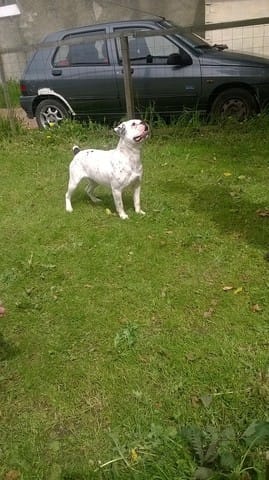 croisé bouledogue, anglais, français ou américain je sais pas, la couleur me fait penser au dalmatien....