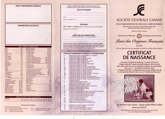 Quelques semaines apres on a recu tout les papiers de ma chienne. Arbre genealogique, carte "d'identite"... Tout les papiers legaux.