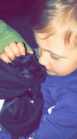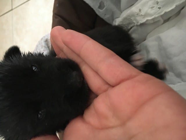 Mon mari a trouvé un chiot de 2 jours, sur le bord de la route en pleine campagne, abandonné, blessé.