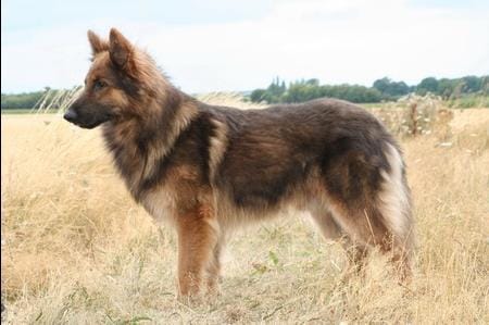Et dernièrement encore un chien inattendu, c'est le berger allemand ancien type, quelqu'un en avait parlé sur le forum une fois, j'ai fait des recherches et j'ai craqué, car autant j'aime pas trop le berger allemand pour un point de vu physique (arrière train qui décent) et que je me vois mal assumer une lignée de travail. Le berger allemand est d'un point de vu mental un chien qui me plait, et le berger allemand ancien type regroupe ce physique carré et rustique que j'aime chez un chien avec le mental du berger allemand, que demander de mieux, avec en plus des couleurs qui sont superbes et changent du noir et feu. La raison qui me pousse pas à en prendre est un point de vu budget, certains femelles font plus de 35 kilos, donc assumer un tel chien d'un point de vu nourriture n'est pas facile, moi je me dis de pas dépasser 50 euros par mois pour la nourriture du chien ou des chiens, le mien je suis 20 euros environ. Donc mon prochain chien sera "moyen"