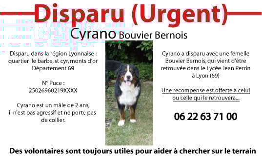 Ce n'est pas mon chien mais j'aide ces personnes à le retrouver d'une manière ou autre