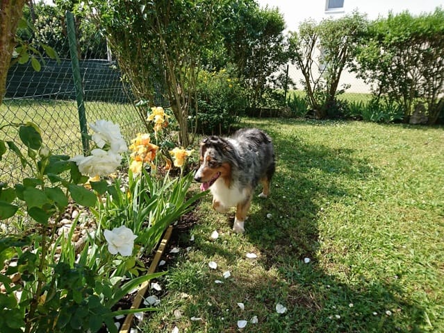 Parfois cette chienne joue tellement, que ses pattes n'arrivent plus à la supporter. Elle te fait un grand écart (pattes de devant). Là on l'aide à s'en remettre, elle va se reposer un instant, et elle revient à la charge!!