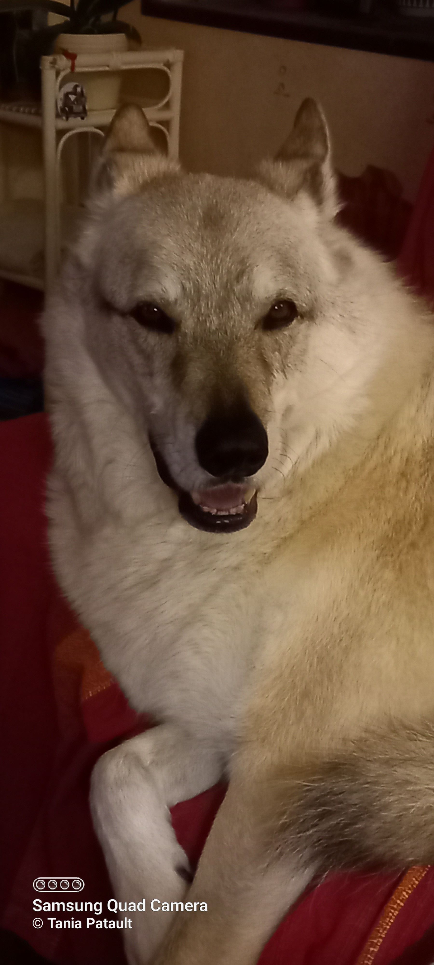 Je vois que "Gros louloup" prend la vie du bon côté ! Ce regard, ça ne voudrait pas dire "fais-moi des grattouilles, au lieu de prendre des photos", par hasard ?