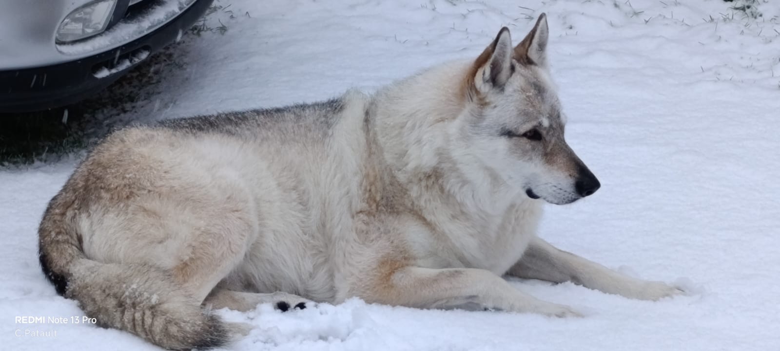 Recette du jour : chiens à la neige. Nos deux olibrius ont passé la majeure partie de la journée à jouer dedans malgré que la couche soit fine. Il devrait encore en tomber demain. Ils vont être contents. Nous, un peu moins : ça complique un peu les déplacements en voiture.