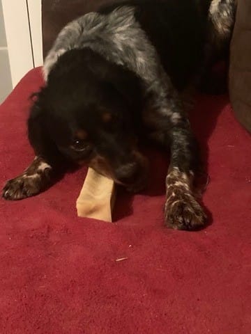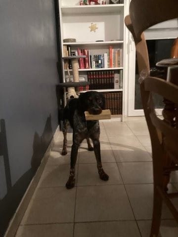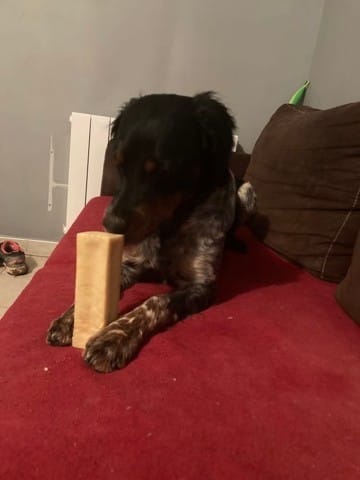 On a aussi reçu un bois de chevreuil, je ne sais pas si je lui donnerais une petite demi heure après ou si ça attendra demain 🤭