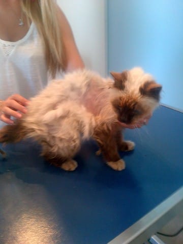 Elle reste dans une mini balcon sans eau ni nourriture ni jouet il n'y a rien . Elle regarde les personnes qui passent d'un air triste.