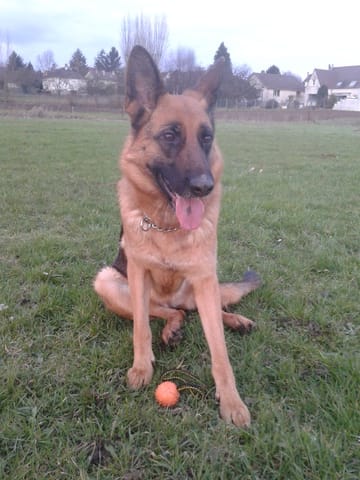 Aujourd'hui après la ballade on a fait une partie, je le caressais a fond a chaque fois, ensuite je lui ai donner un biscuit pour le récompenser et on a recommencer jusqu'a ce que le chien du club equestre vienne nous la piquer et l'embarquer au club XD j'ai du aller l'échanger contre une friandise... La propriétaire? elle est sortie de son trou seulement une fois que j'ai récupéré la balle...