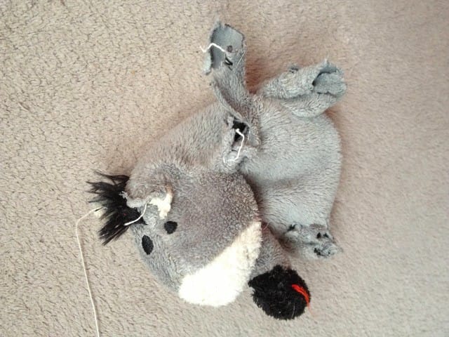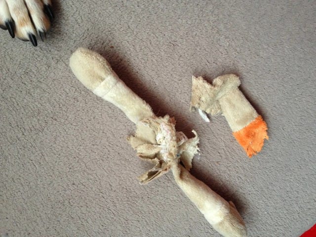 MDR. Machine à détruire. Et bien les kongs ne l’intéresse pas, ni même les pipolino. Elle n'y prête aucunes attention. Voici des photos de trois petites peluches toutes inoffensive, je tiens à dire qu'elles étaient entière, neuf j'ai juste retiré la mousse. Pour la peluche ou on ne vois que les pattes, c'était un petit doudou pour enfant. Et aussi l'os au jour d'aujourd'hui. ^^'