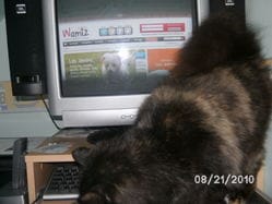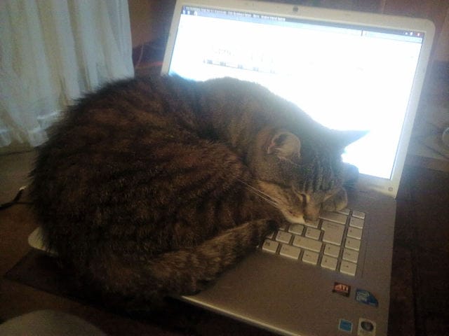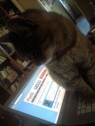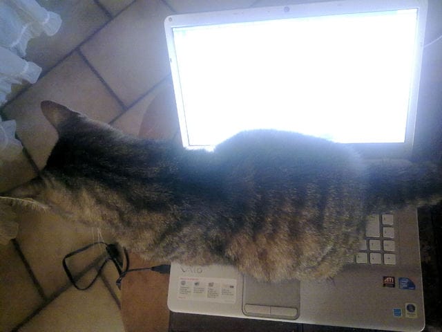 Un grand merci de papy Tigron, le chat prêt à tout pour empêcher sa maîtresse d'utiliser trop souvent son ordinateur au détriment des caresses !