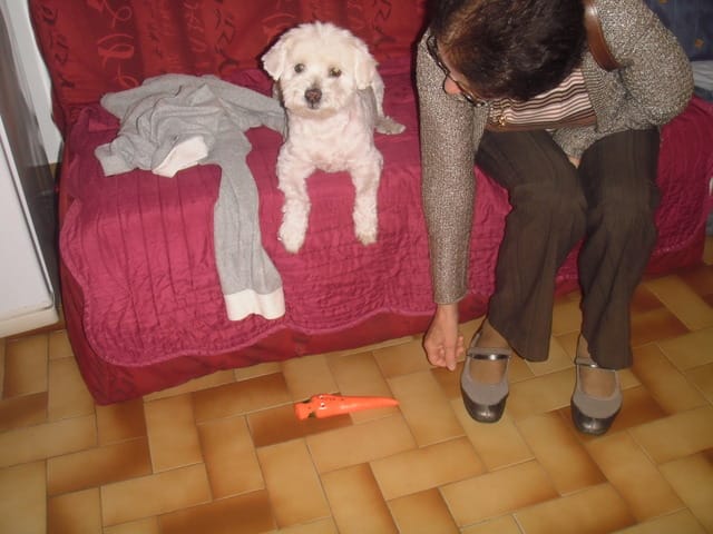 Merci Chloee, tu as raison Monsieur est sur son trône, et c'est le roi à la maison, il fait ce qu'il veut. Je mets une autre photo. Nous sommes à la grande motte avec une amie, il veut qu'elle lui ramassa sa carotte. A+