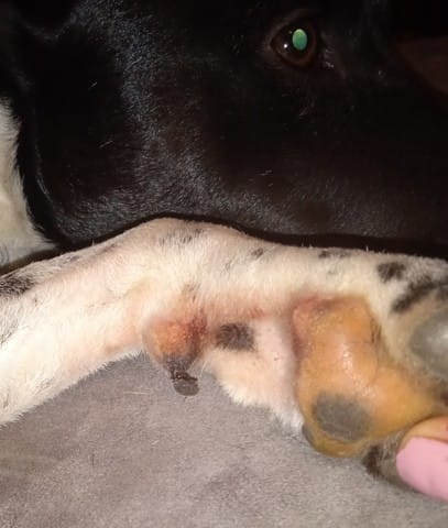 Ça n'a pas l'air de lui faire mal, d'ailleurs je m'en suis rendue compte en fin de séance de jeu (vous savez, le moment où les chiens ralentissent et sont moins flou 😂) sa patte était rouge de sang.