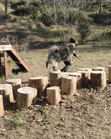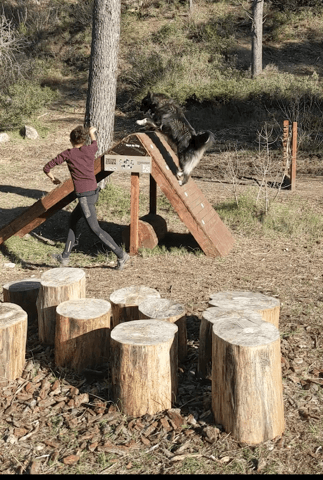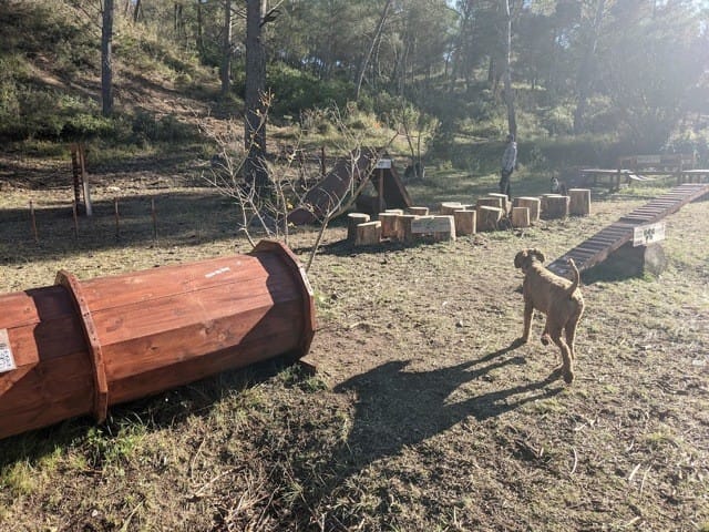 Pas une vraie balade mais ma découverte d'hier, un parcours d'agility en bois (avec tout : le tunnel, le pneu, la balançoire...) en libre accès au pieds de la colline, trop chouette !
