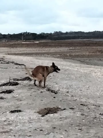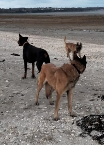 J'avais commencé à apprendre à Rocky à y aller mais définitivement, ça n'est pas sa tasse de thé ( par contre...il a bu de l'eau de mer et demande honteusement à sortir dehors car pipi urgent ahah décidément, il n'a pas remarqué que Berger s'était abstenu d'en boire ! )