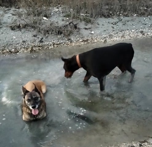 Ah ça ... Rocky c'est pas un amateur de flotte... Berger est fanatique, Sirius a mis du temps avant d'oser y aller mais il ne sait pas nager !
