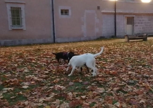 J'aime pas les tensions négatives 😅 Oh et la tronche que tirait le chien d'en face, des yeux hyper ouvert, on aurait dit qu'il était sous coke ! (sous le coup de l'énervement). Bon, avec les deux furieux on a pas échangé beaucoup de mots mais de ce que j'ai compris, la maîtresse aussi n'a jamais eu de telles réactions de la part de son chien.