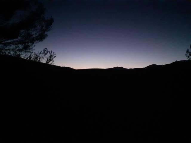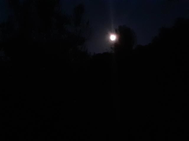 Moi pas de photos de Rio ce soir, mais une balade au clair de lune bien sympa. C'était tout à fait étonnant car j'avais la lueur du soleil couchant d'un côté et derrière moi, la pleine lune. Lorsque le soleil eut complètement disparu, je n'ai pas eu besoin de lampe. La lune éclairait super bien le sol calcaire... Super agréable. Bon a part Rio qui s'était roulé dans un caca bien puant et qui est venu me faire une léchouille... Beurk, je puait autant que lui en rentrant.