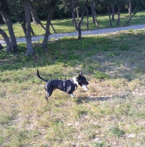 Elle est toujours pleine de joie ta maya... on reconnaît la joie de vivre du amstaff et l'enthousiasme du border 🙂