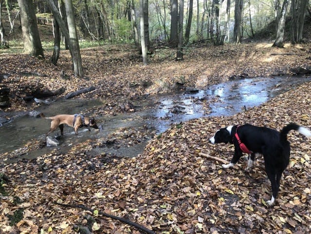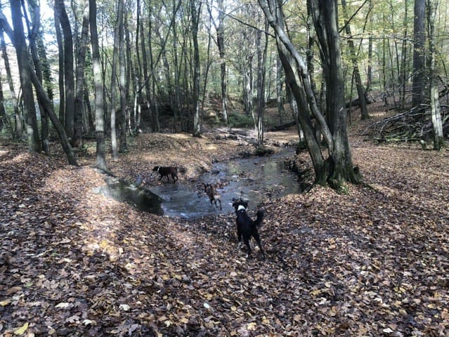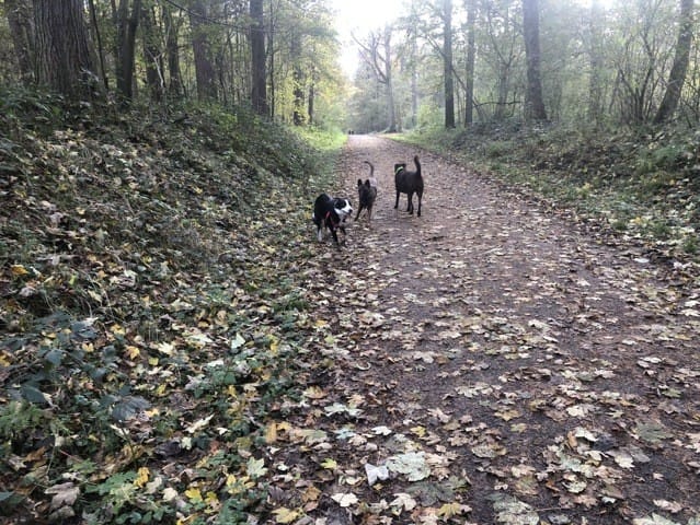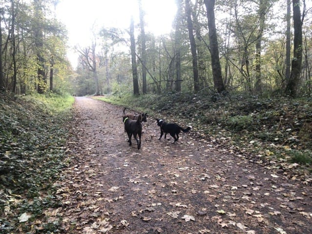 Nous n’avons jamais eu besoin de les attacher , une très bonne ambiance entre les chiens qui ont su parfaitement communiquer sans aide extérieur , un vrai plaisir !