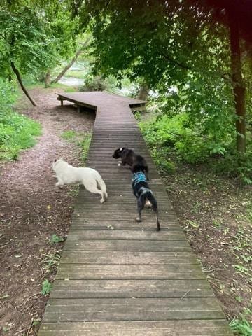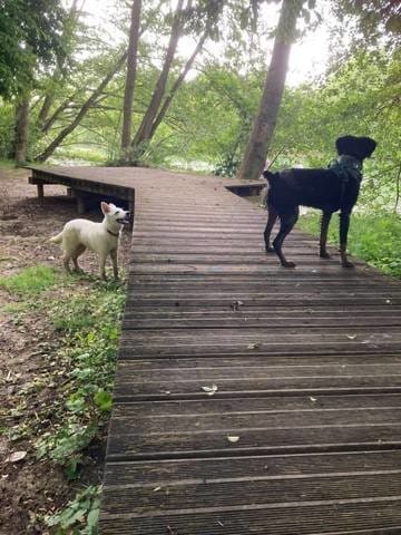 Athos avec la berger (ils jouaient sur et sous le ponton, "je suis caché !" "hey t'es ou ??" 🤭 )
