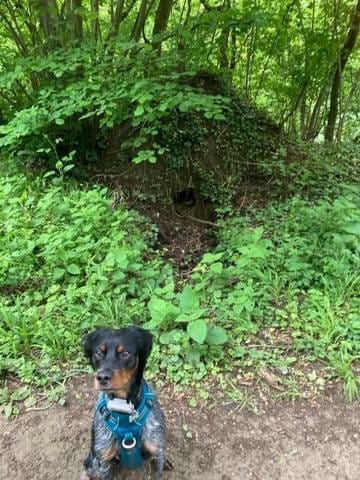 Hey regardez j'ai trouvé un trou !! (lapin ? Renard plutôt ?) Heureusement il n'a pas eu l'idée d'essayer d'entrer dedans.