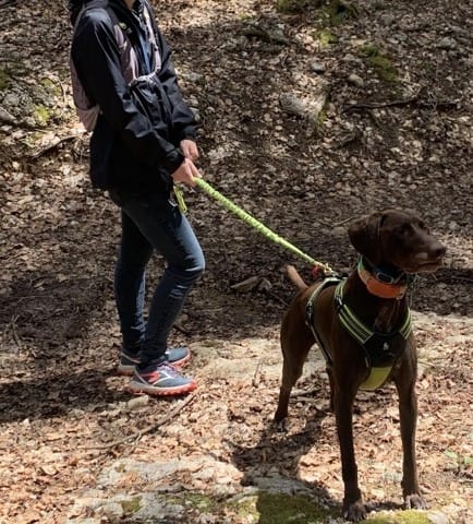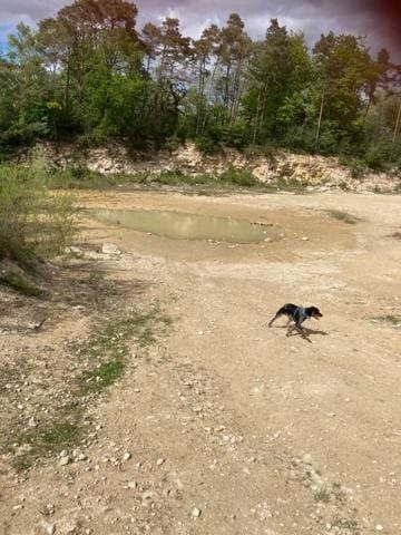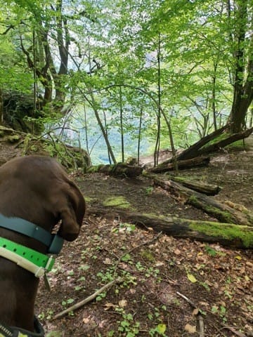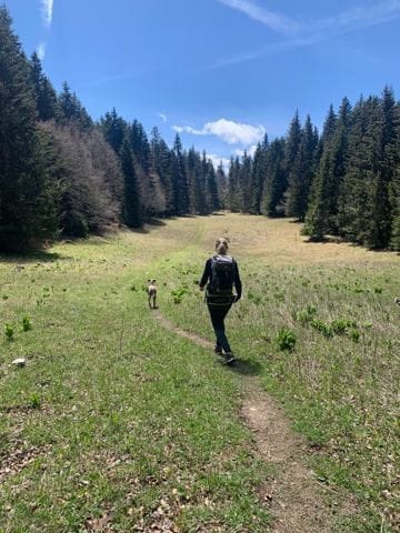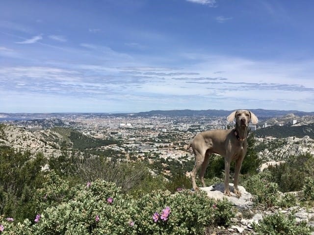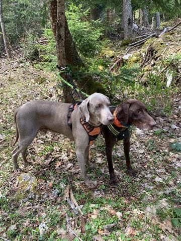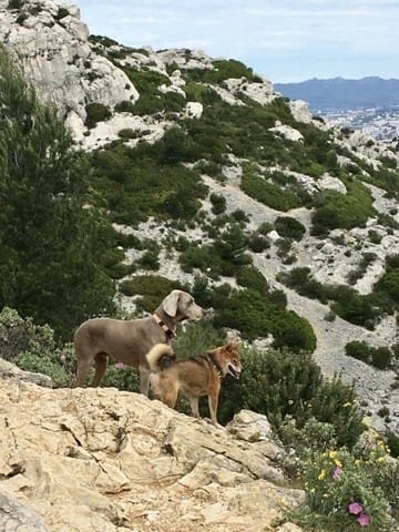 On a fait la rando avec un copain canin, presque du même âge, Hermès, un braque de Weimar, assez drôle de l’observer, toujours dans les fourrés et des fois on voyais ça tête dépasser comme une sous marin 😂 jamais loin de ça maîtresse, pas plus de 6/8m. Ah et aussi une façon très noble de se tenir, on aurais dit qu’il faisait le roi lion, perché en hauteur sur un rocher à vous observer de haut 😂.