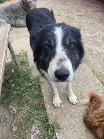 Maman border s'est prit un coup d'un cheval (en même temps ils courent après et leur mordent les jarrets...), du coup elle une belle bosse et deux agrafes sur le nez !