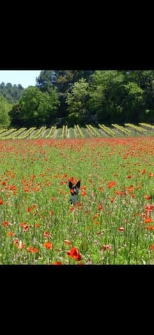 En balade on a trouvé un grand champs de coquelicots. Ma chienne s'est transformé en lapin géant