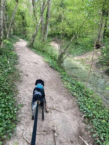 Aujourd'hui lors de la balade du soir, on a retrouvé Pistache le retriver et on a fait la balade ensemble... Pistache a du mal à suivre Athos, il est beaucoup plus lourdaud XD On sent quel n'y a pas la même énergie chez les deux chiens !