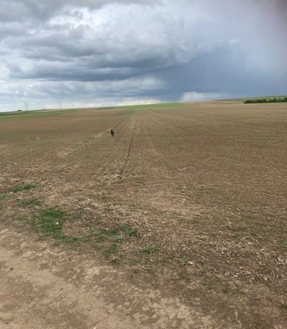 Puis petit passage en longe car bien que dans les champs on est à coté d'une écurie, mais pas la mienne et je crains qu'Athos veuille aller dire bonjour aux chevaux :