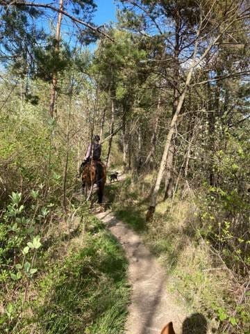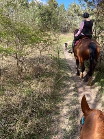 On fait toujours les balades avec Tina le week end, mais en ce moment on fait des essais pour une nouvelle selle pour ma mère et du coup je ne pense pas à faire des photos ! On a aussi eu la période des chenilles des noisetier, qui font des toiles et se pendent aux arbres et qu'il faut donc éviter... Si je prend en photo, je suis couverte de chenille XD