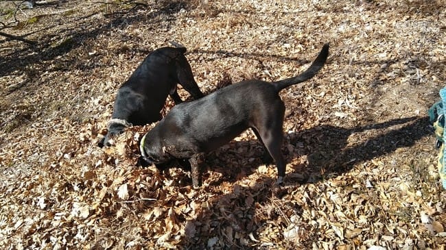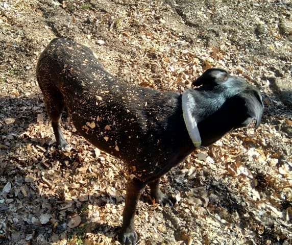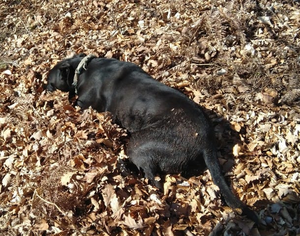 Dingo a opté pour l'embuscade, en s'enfouissnt sous les feuilles mortes, en mode photographe animalier... Et attendre les bestioles :