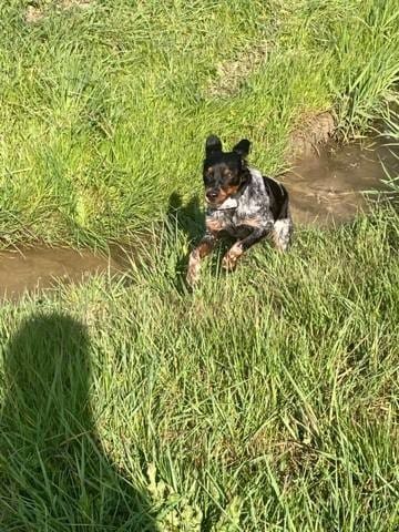 On a bien passé 5 min de plus a s'approcher de lui et à gesticuler dans les champs en l'appelant, avant qu'enfin il nous voit et court vers nous. Il avait l'air content de nous avoir retrouvé mais on a pas eu une fête de fou non plus. Il avait aussi l'air fatigué. Heureusement, on était à 100m de chez mes parents donc on est rentré.
