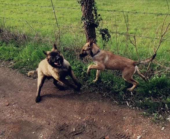 Promenade avec un Akita et un bébé Tervueren pour le mien hier, il a adoré !