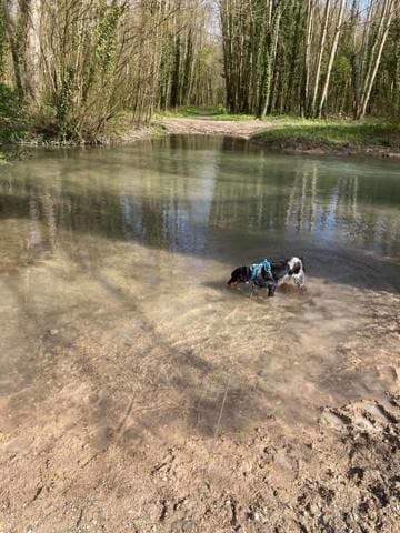 Aujourd'hui nous sommes retourné dans le parc/foret où il y a pleins de points d'eau avec Athos ^^ Il fait bien 10°c de moins que la dernière fois, donc il c'est moins baigné, mais il a quand même sauté une ou deux fois dans l'eau 🤭
